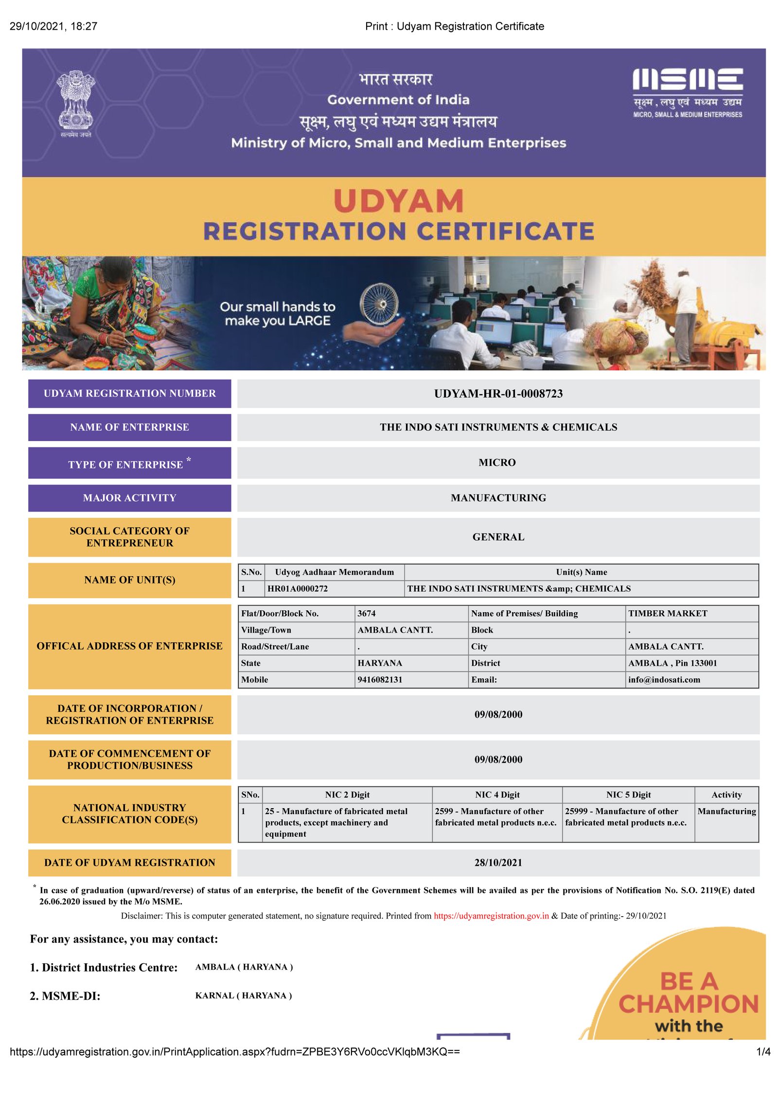 #3674, Timber Market, Ambala Cantt-133001 (hr), India